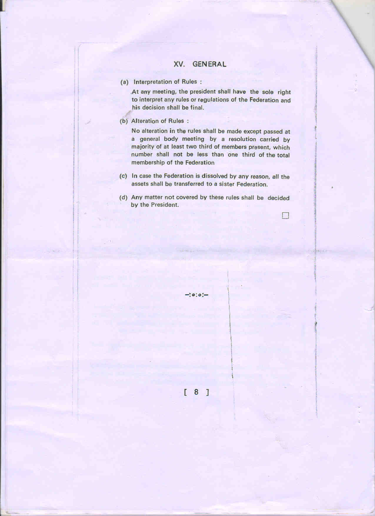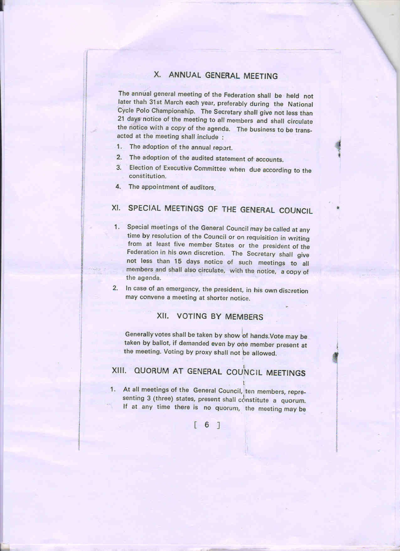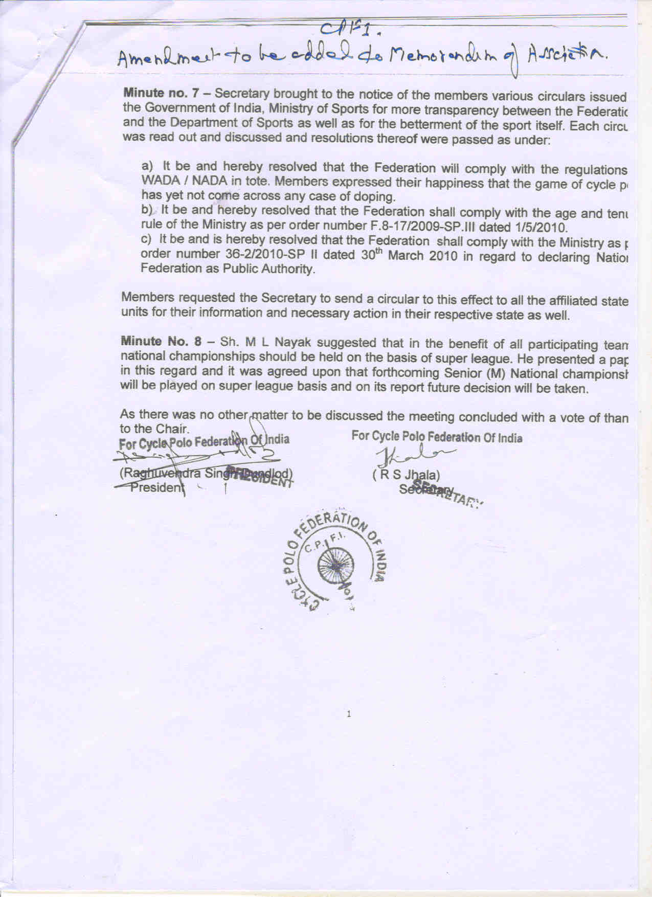 Registration No: 157/1966 Affiliated & Recognized by: ● Ministry of Youth Affairs & Sports ● SAI (Sports Authority of India) ● IBPF (International Bicycle Polo Federation) ● ACPF (Asian Cycle Polo Federation)